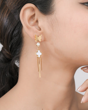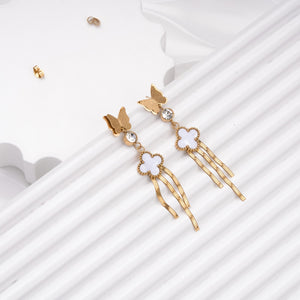 Butterfly Clover Tassel Drops 18 Carat Gold Finished PVD Coated Anti-Tarnish Earrings