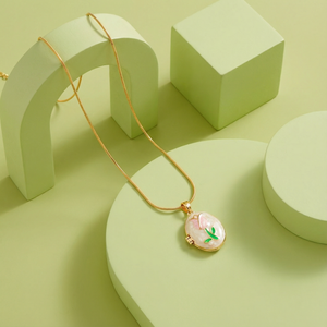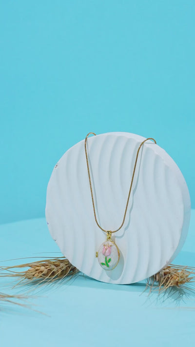 Blush Tulip Locket 18 Carat Gold Finished PVD Coated Anti-Tarnish Necklace