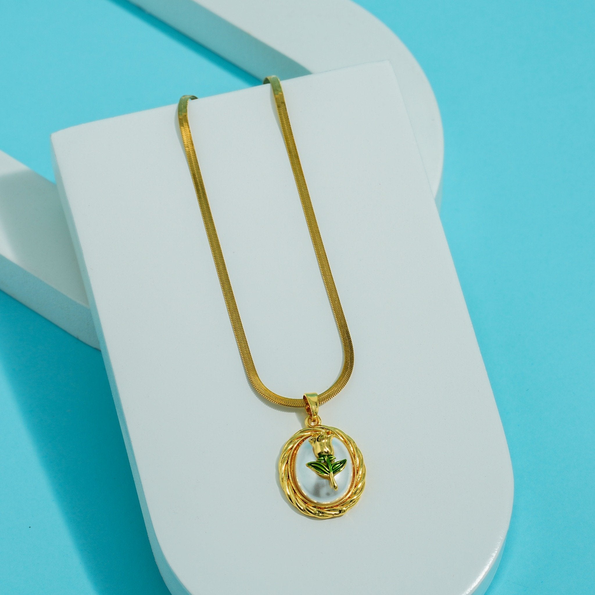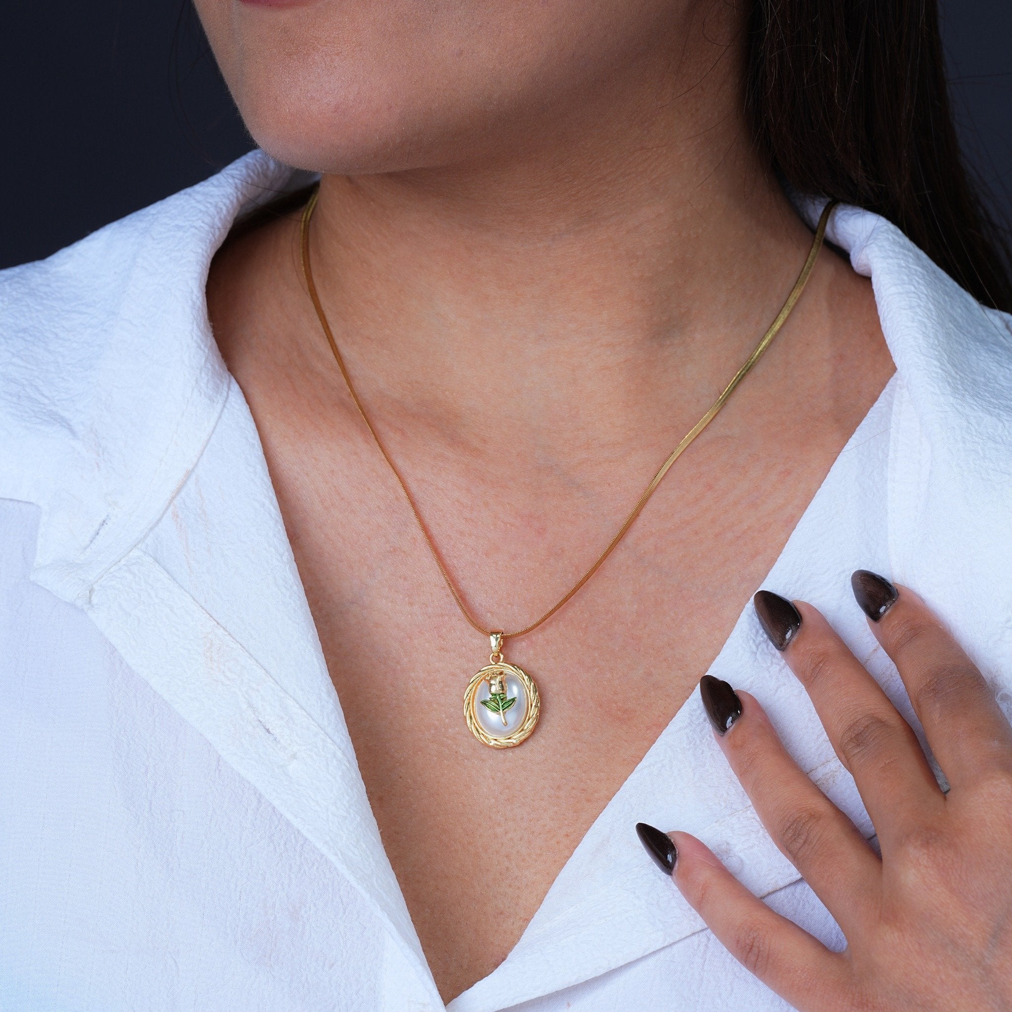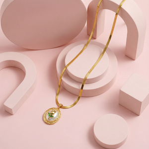 Embrace timeless romance with the Golden Rose Embrace Pendant 18 Carat Gold Finished PVD Coated Anti-Tarnish Necklace, designed to symbolize love, beauty, and elegance. Featuring a delicately crafted rose-inspired pendant with graceful contours, this necklace creates a refined and feminine statement at the neckline. Finished with premium 18-carat gold PVD coating, it offers long-lasting shine and superior resistance to tarnish for everyday confidence. Lightweight and comfortable, it pairs effortlessly with casual, office, and festive outfits. Wear it solo for a sophisticated look or layer it for modern styling. The Golden Rose Embrace Pendant Necklace blends floral artistry, luxurious craftsmanship, and timeless charm into a truly elegant jewelry essential.