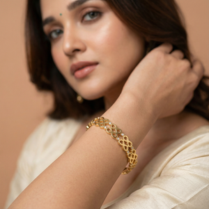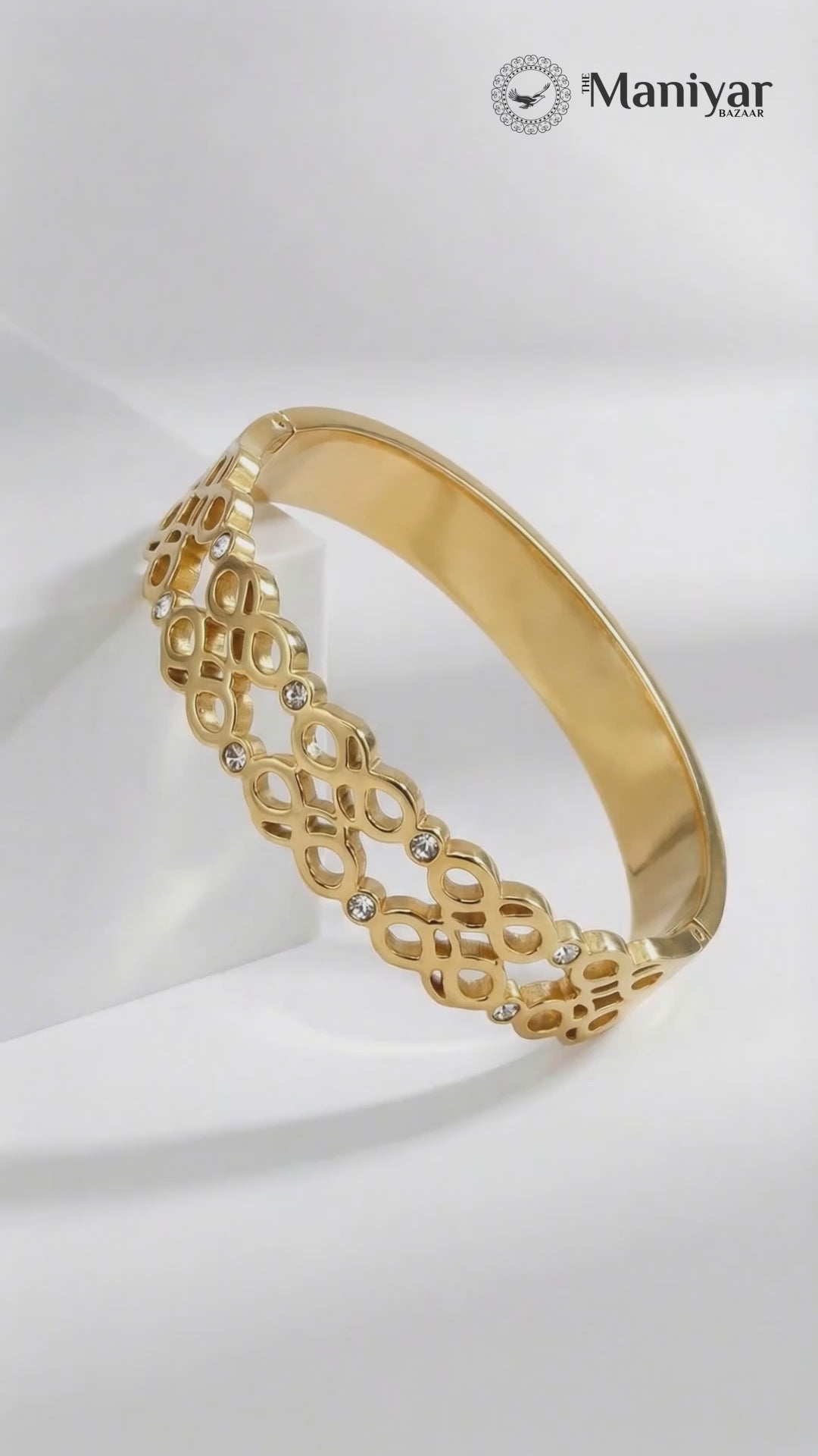 Illuminate your style with the Infinity Glow Gold 18 Carat Gold Finished PVD Coated Anti-Tarnish Bracelet, designed to symbolize eternity, elegance, and radiant beauty. Featuring a graceful infinity-inspired design with a luminous gold finish, this bracelet adds a refined and meaningful touch to your everyday look. Finished with premium 18-carat gold PVD coating, it ensures long-lasting shine and excellent resistance to tarnish for worry-free wear. Lightweight and comfortable, it sits beautifully on the wrist and pairs effortlessly with casual, office, and festive outfits. Wear it alone for a subtle statement or stack it with other bracelets for a chic layered style. The Infinity Glow Gold Bracelet blends timeless symbolism, modern craftsmanship, and luxurious durability into a versatile jewelry essential.