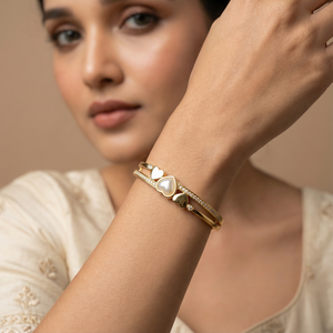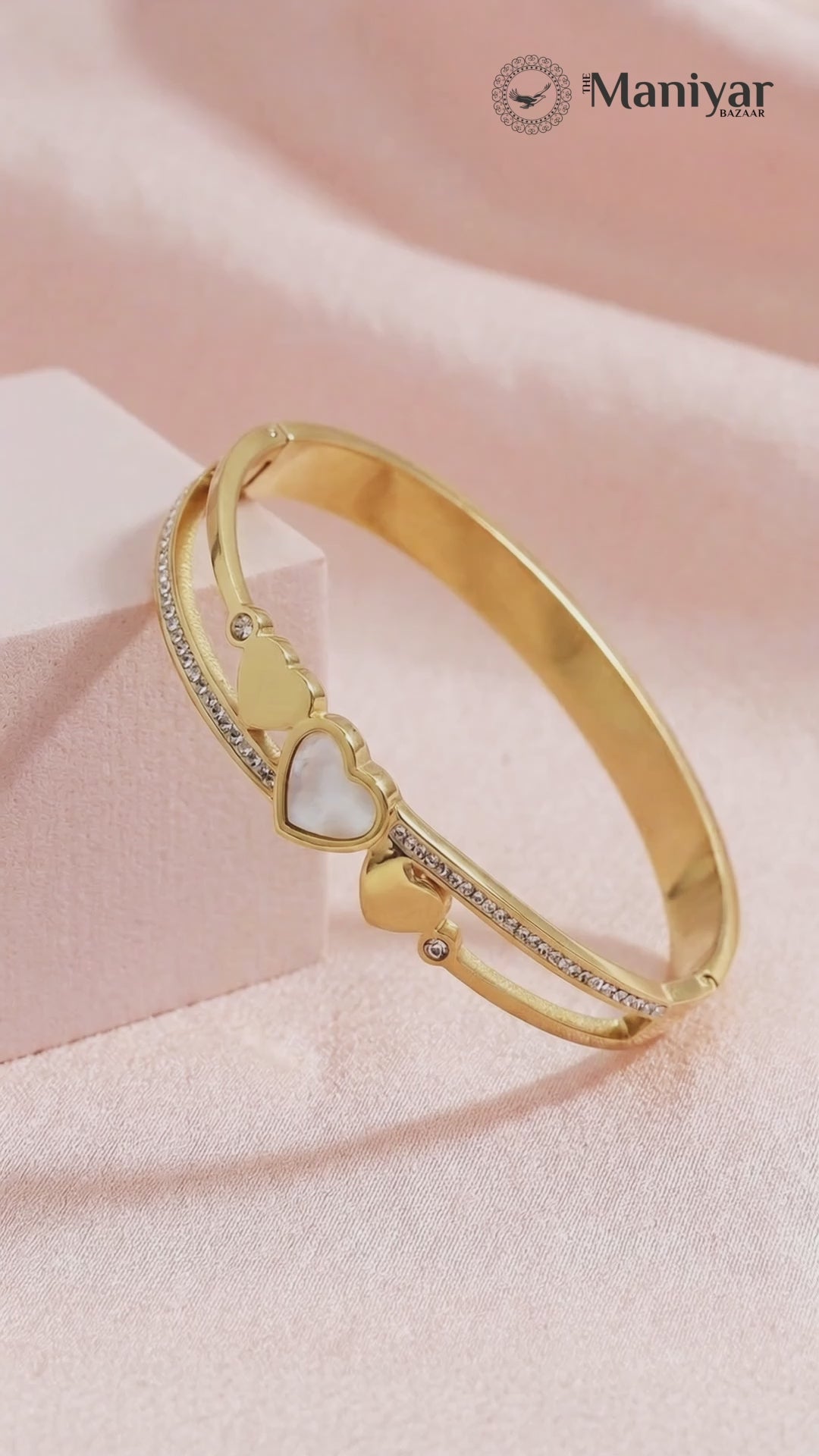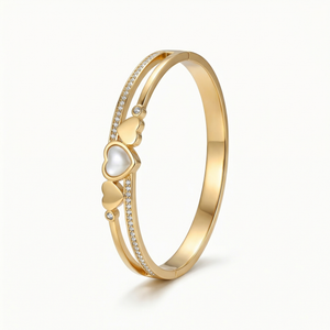 Add a touch of romantic sparkle to your wrist with the Crystal Heart Gold 18 Carat Gold Finished PVD Coated Anti-Tarnish Bracelet, designed to celebrate love and elegance. Featuring a beautifully crafted heart motif accented with shimmering crystal details, this bracelet creates a graceful and feminine statement. Finished with premium 18-carat gold PVD coating, it ensures long-lasting shine and excellent resistance to tarnish for everyday wear. Lightweight and comfortable, it rests gracefully on the wrist and pairs effortlessly with casual, office, and festive outfits. Wear it alone for a refined look or stack it with other bracelets for a chic layered style. The Crystal Heart Gold Bracelet blends romantic symbolism, crystal brilliance, and luxurious craftsmanship into a timeless jewelry essential.