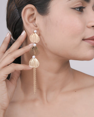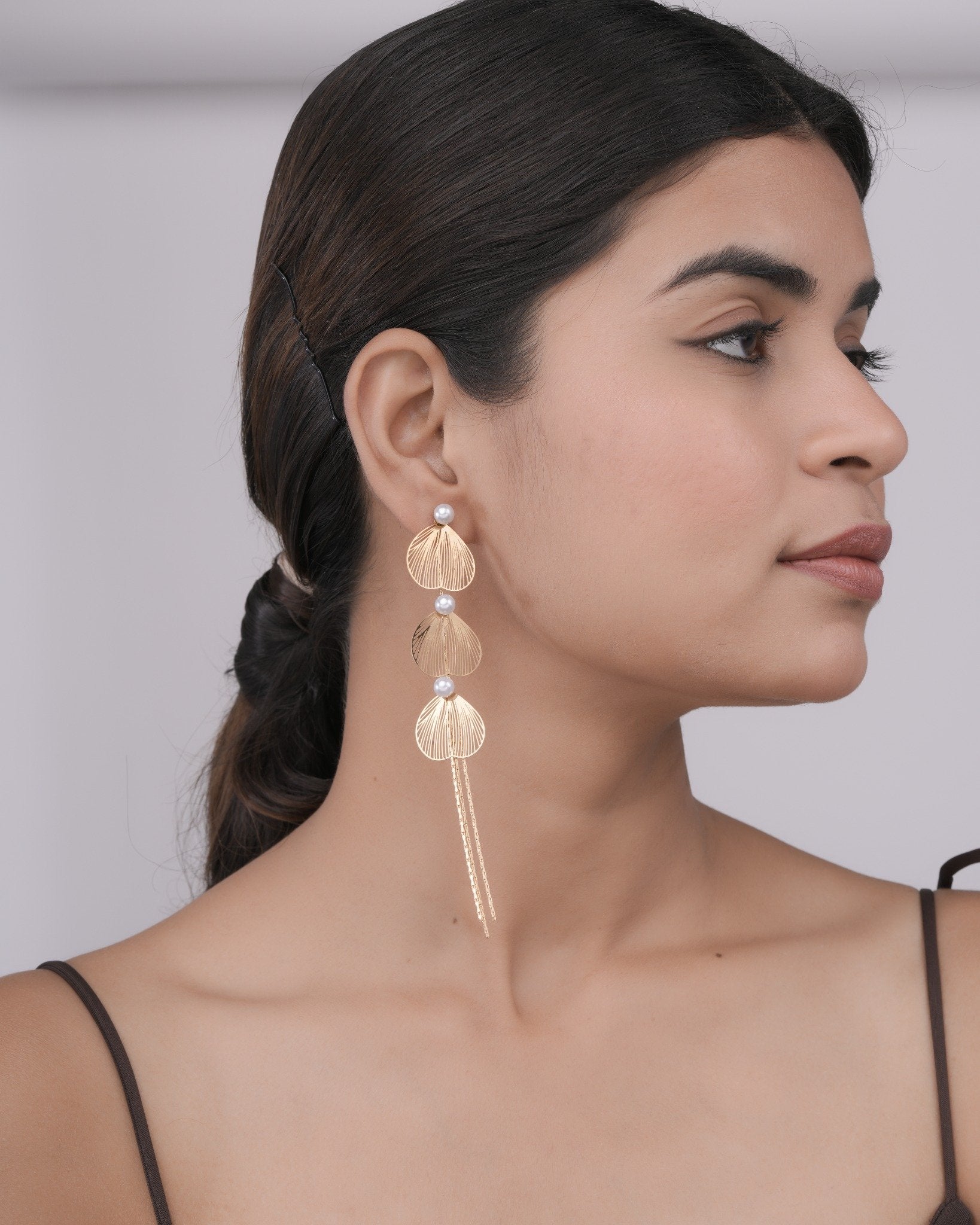 Pearl Leaf Cascade 18 Carat Gold Finished PVD Coated Anti-Tarnish Earrings