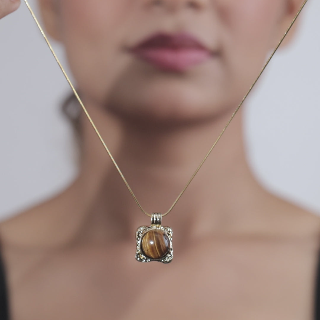 Elevate your everyday style with this elegant Stone Pendant Necklace, designed to blend timeless charm with modern sophistication. Featuring a rich brown set in a beautifully detailed gold-tone frame, this pendant reflects warmth, confidence, and natural beauty. The smooth, polished stone showcases Tiger Eye’s signature shimmering bands, making each piece unique. Suspended from a delicate gold-finish chain, this necklace sits gracefully at the neckline and pairs effortlessly with both casual and formal outfits.