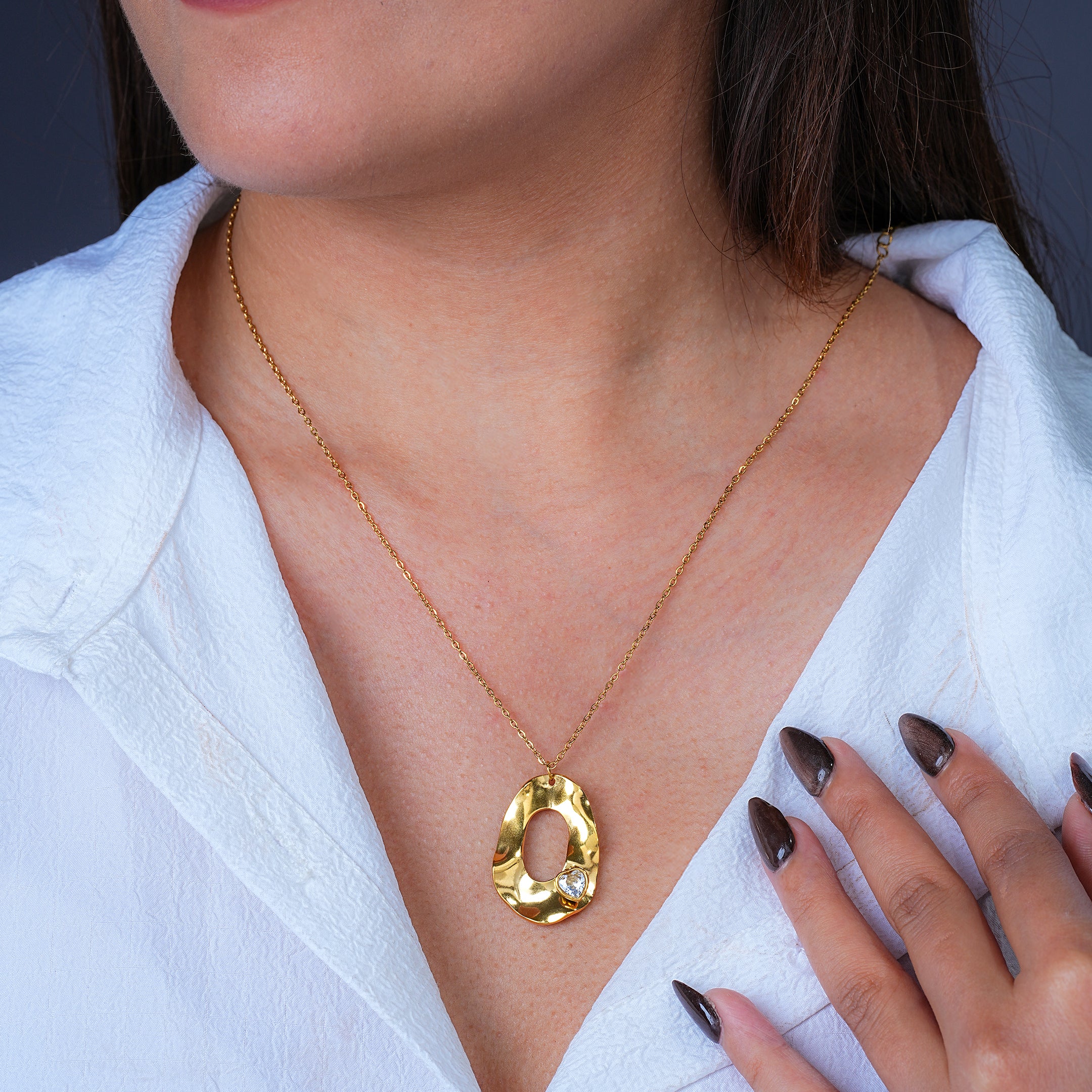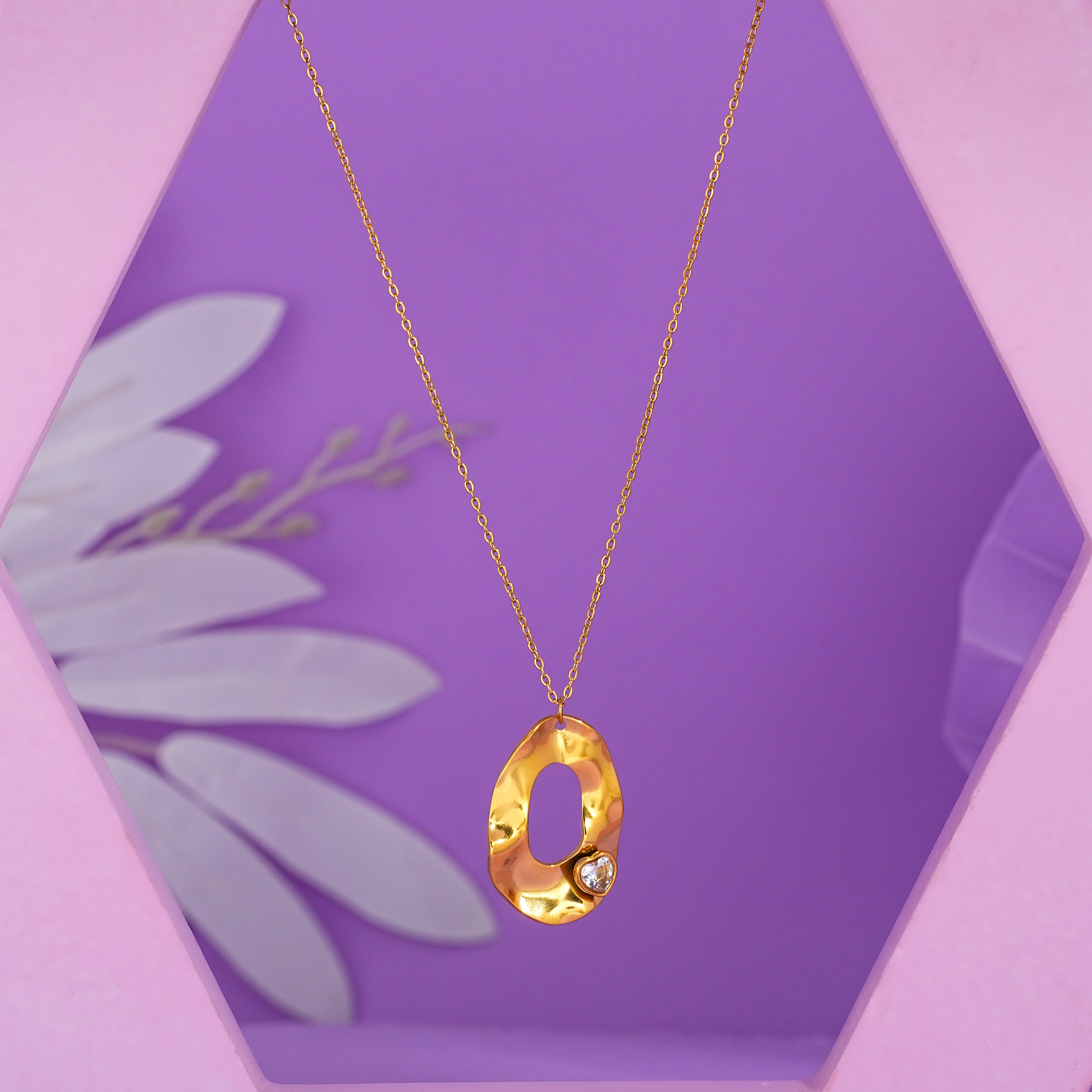 Aurelia Oval Spark 18 Carat Gold Finished PVD Coated Anti-Tarnish Necklace