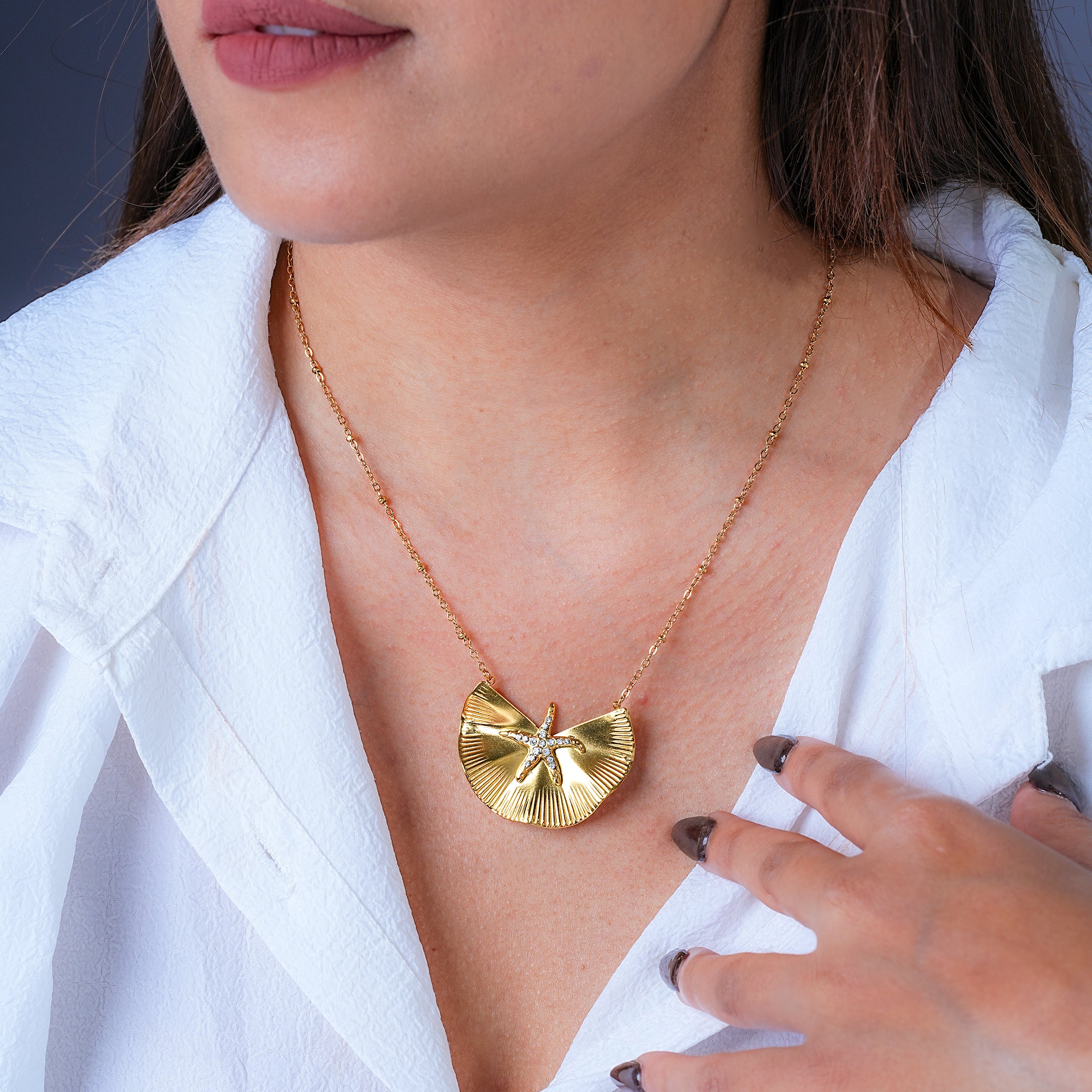 Elevate your elegance with the Stellara Tidecrest 18 Carat Gold Finished PVD Coated Anti-Tarnish Necklace, inspired by flowing tides and celestial brilliance. Designed with a refined crest-style motif, this necklace reflects movement, balance, and modern luxury. Finished with premium 18-carat gold PVD coating, it delivers a radiant shine with excellent resistance to tarnish, ensuring lasting beauty for everyday wear. Lightweight and comfortable, it transitions effortlessly from casual and office looks to evening occasions. Wear it solo for a sophisticated statement or layer it for contemporary styling. The Stellara Tidecrest Necklace embodies graceful design, durability, and timeless charm.