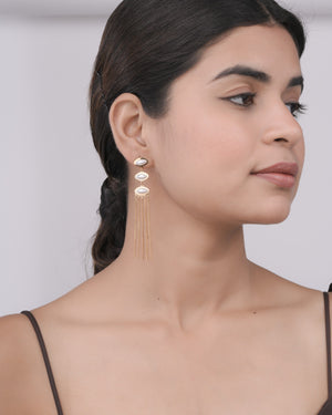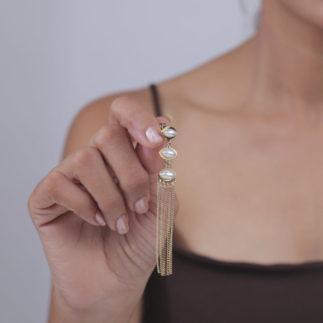 Add refined movement and elegance to your look with the Aurielle Pearl Chainfall 18 Carat Gold Finished PVD Coated Anti-Tarnish Earrings. Designed with a graceful chainfall silhouette accented by luminous pearls, these earrings create a delicate cascading effect that enhances any outfit. Finished with premium 18-carat gold PVD coating, they offer long-lasting shine and excellent resistance to tarnish for everyday confidence. Lightweight and comfortable, they pair effortlessly with ethnic, western, and evening wear. Perfect for both subtle styling and special occasions, these earrings bring timeless sophistication, modern charm, and luxurious appeal to your jewelry collection.