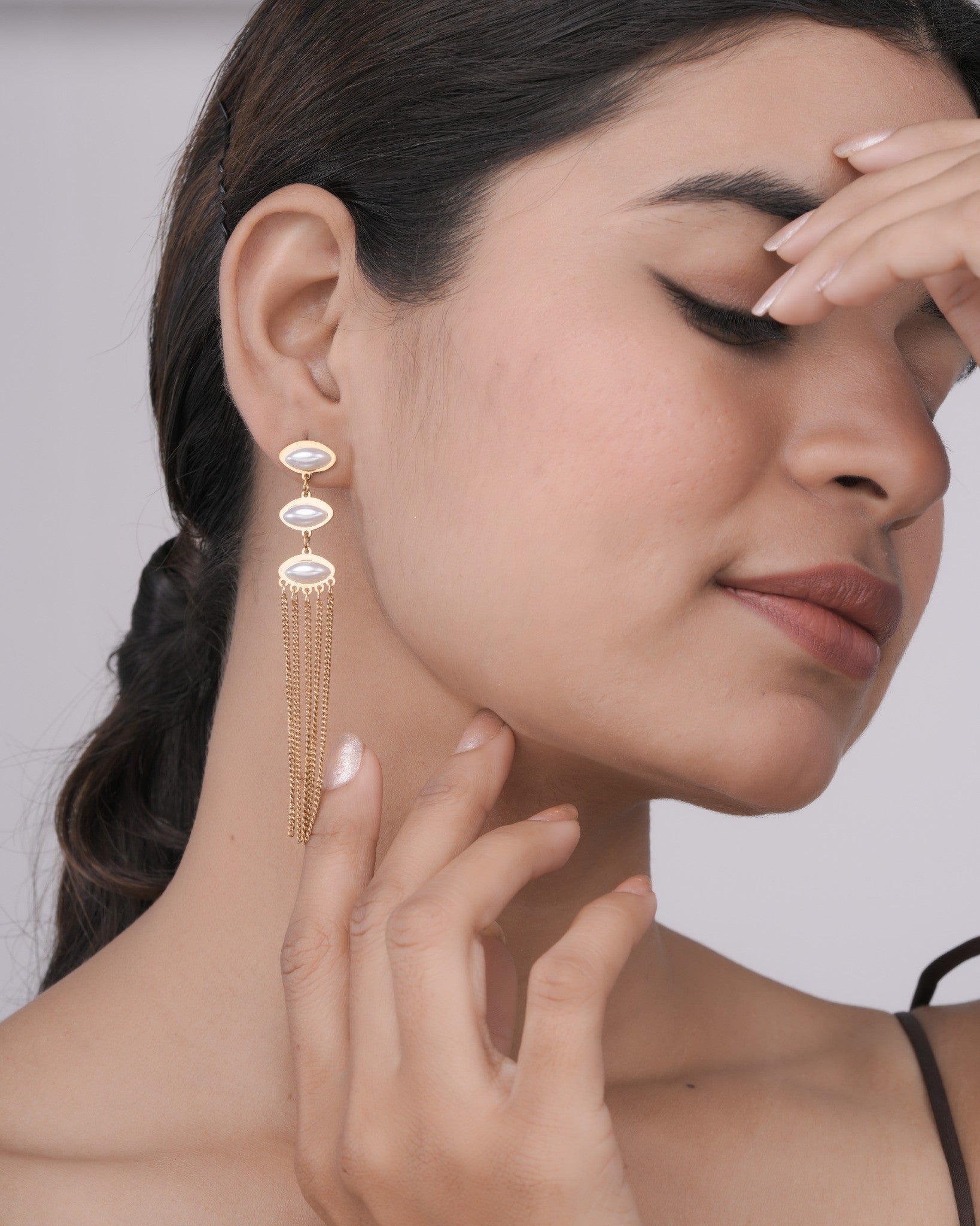 Aurielle Pearl Chainfall 18 Carat Gold Finished PVD Coated Anti-Tarnish Earrings