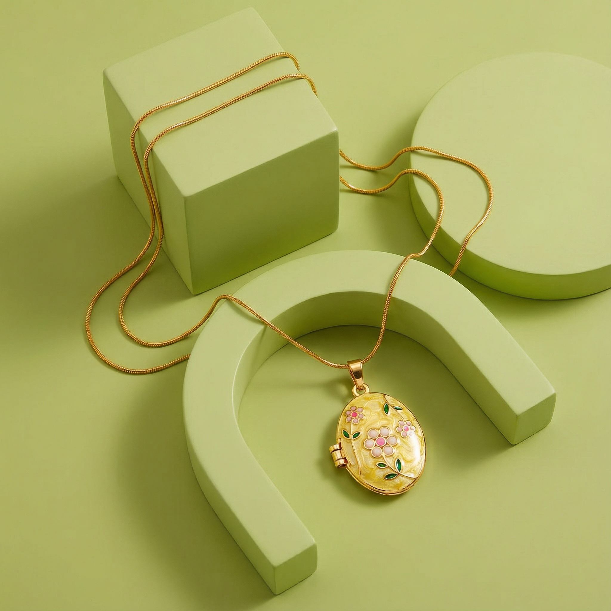 Step into a world of timeless elegance with the Golden Garden Locket 18 Carat Gold Finished PVD Coated Anti-Tarnish Necklace, inspired by the beauty of blooming gardens and cherished memories. Featuring a delicately crafted garden-inspired locket pendant, this necklace symbolizes growth, love, and everlasting charm. Finished with premium 18-carat gold PVD coating, it offers long-lasting shine and excellent resistance to tarnish for everyday wear. Lightweight and comfortable, it pairs effortlessly with casual, office, and festive outfits. The locket design lets you keep special moments close while adding refined sophistication to your look. Wear it solo for a graceful statement or layer it for modern styling. This necklace blends sentimental meaning with luxurious craftsmanship into a truly enchanting jewelry essential.