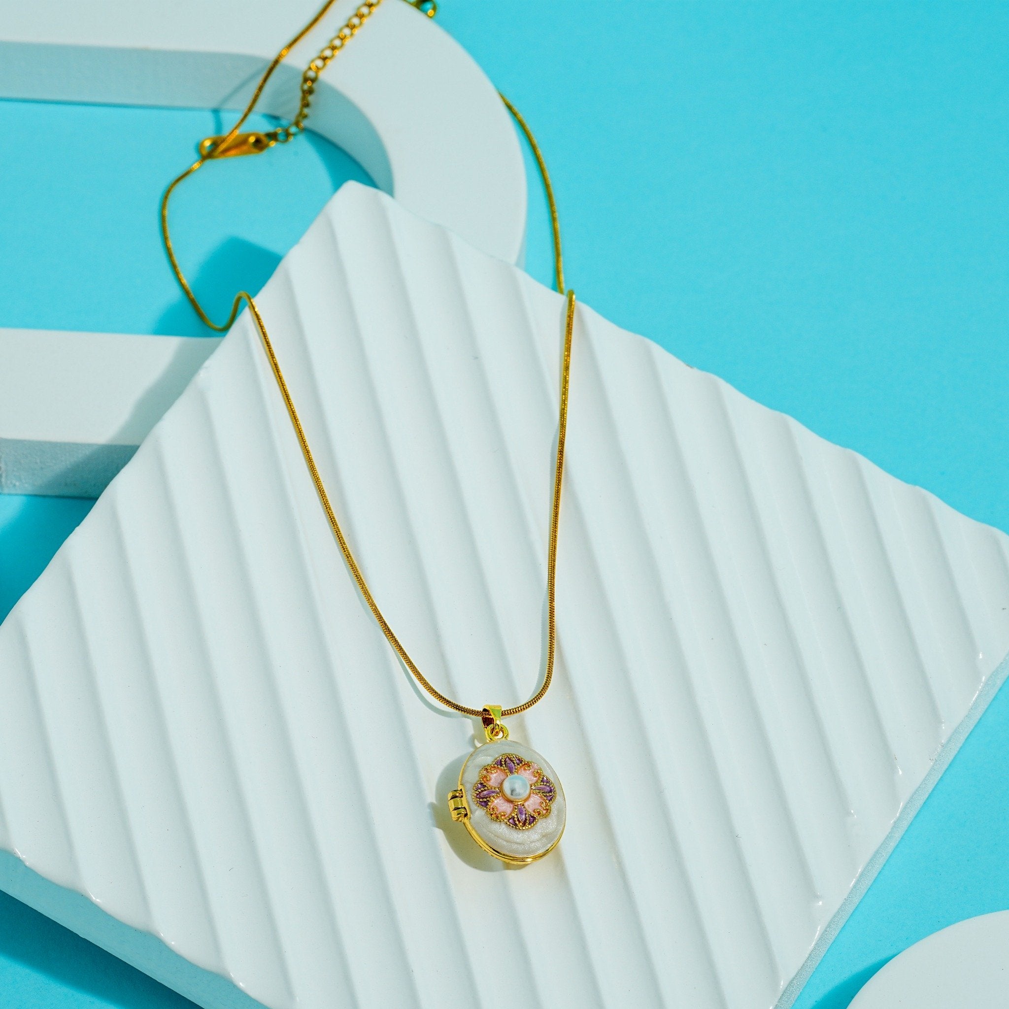 Opal Bloom Pearl Locket 18 Carat Gold Finished PVD Coated Anti-Tarnish Necklace