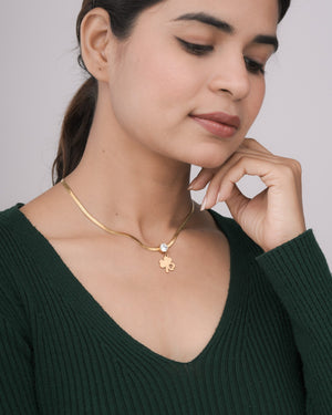 Add a touch of luck and elegance to your everyday style with the Aurelia Clover Anti-Tarnish PVD Gold Necklace. Designed with a refined clover motif, this necklace symbolizes good fortune, harmony, and timeless beauty. Finished with premium PVD gold coating, it offers long-lasting shine and excellent resistance to tarnish, making it perfect for daily wear. Lightweight and comfortable, it pairs effortlessly with casual, office, and festive outfits. Wear it alone for a delicate statement or layer it for a modern look. The Aurelia Clover Necklace blends meaningful design with contemporary sophistication for a versatile jewelry essential.