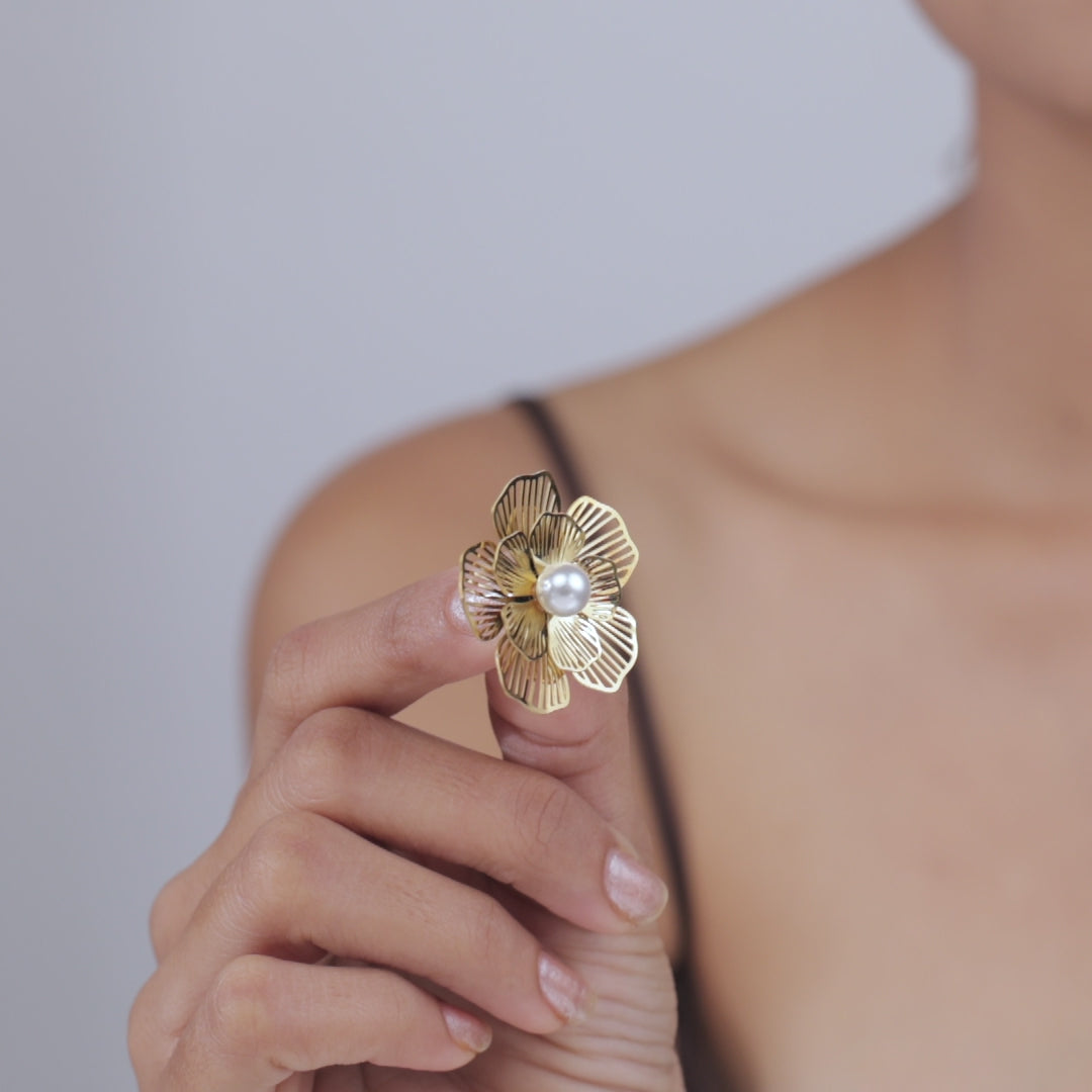 Pearl Flora Studs 18 Carat Gold Finished PVD Coated Anti-Tarnish Earrings