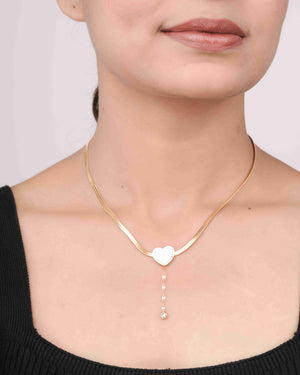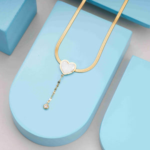Enhance your look with the Anti Tarnish Gold Stylish PVD Heart Drop Necklace, crafted to blend modern elegance with romantic charm. Featuring a sleek heart-shaped drop pendant, this necklace adds graceful movement and a refined statement to your neckline. Finished with premium PVD gold coating, it delivers long-lasting shine and excellent resistance to tarnish, making it ideal for everyday wear. Lightweight and comfortable, it pairs beautifully with casual, office, and evening outfits. Wear it alone for subtle sophistication or layer it for a trendy touch. This heart drop necklace is a perfect expression of style, elegance, and timeless appeal.