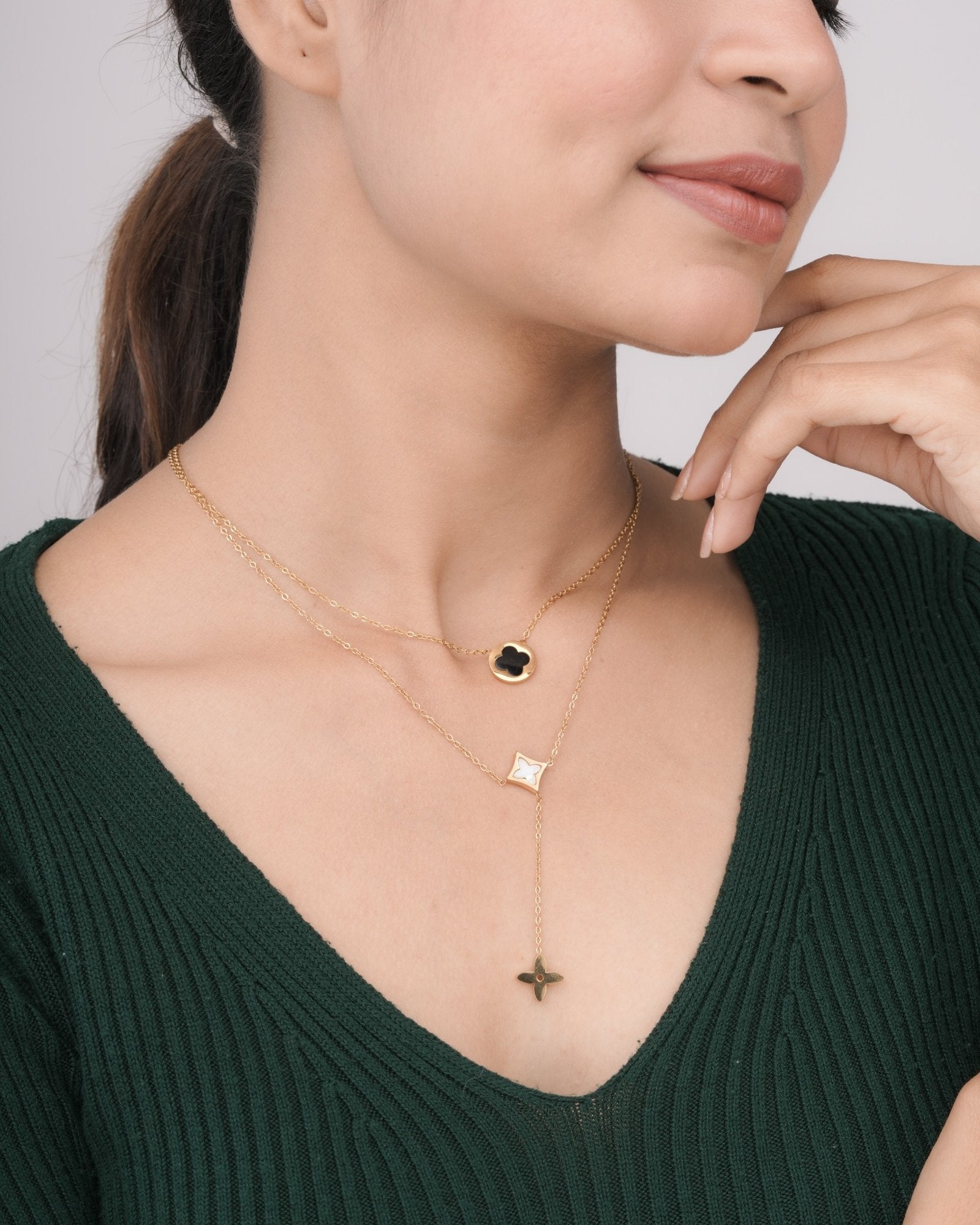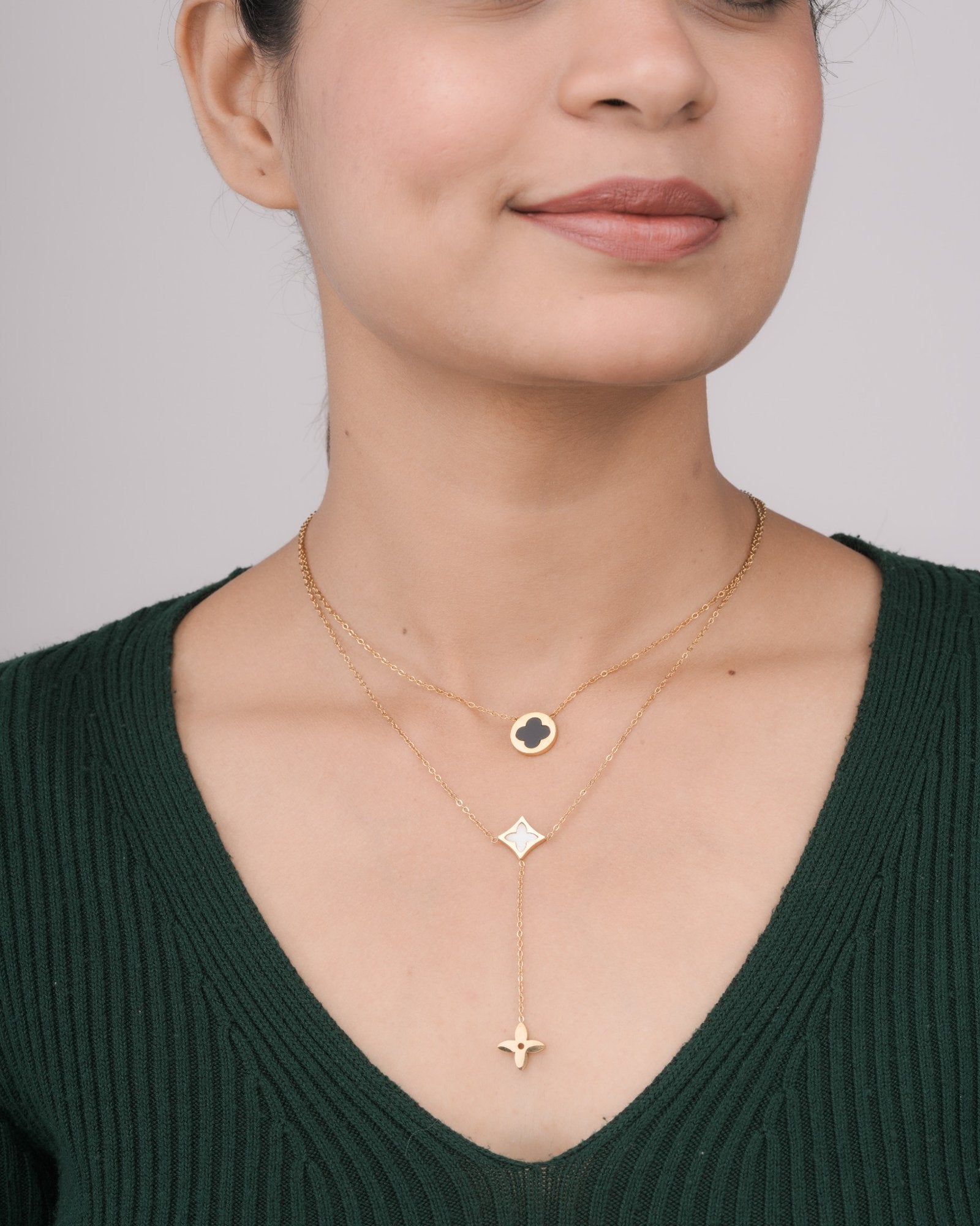 Add fresh elegance to your style with the Verdelle Charm Anti-Tarnish PVD Gold Layered Necklace, inspired by modern charm and effortless sophistication. Featuring a delicate charm paired with a beautifully coordinated layered chain design, this necklace creates a refined, dimensional look. Crafted with premium PVD gold coating, it offers long-lasting shine and excellent resistance to tarnish, making it perfect for everyday wear. Lightweight and comfortable, it pairs seamlessly with casual, office, and evening outfits. The ready-to-wear layered style adds instant polish without extra effort. The Verdelle Charm Necklace blends contemporary design with timeless elegance for a versatile addition to your jewelry collection.