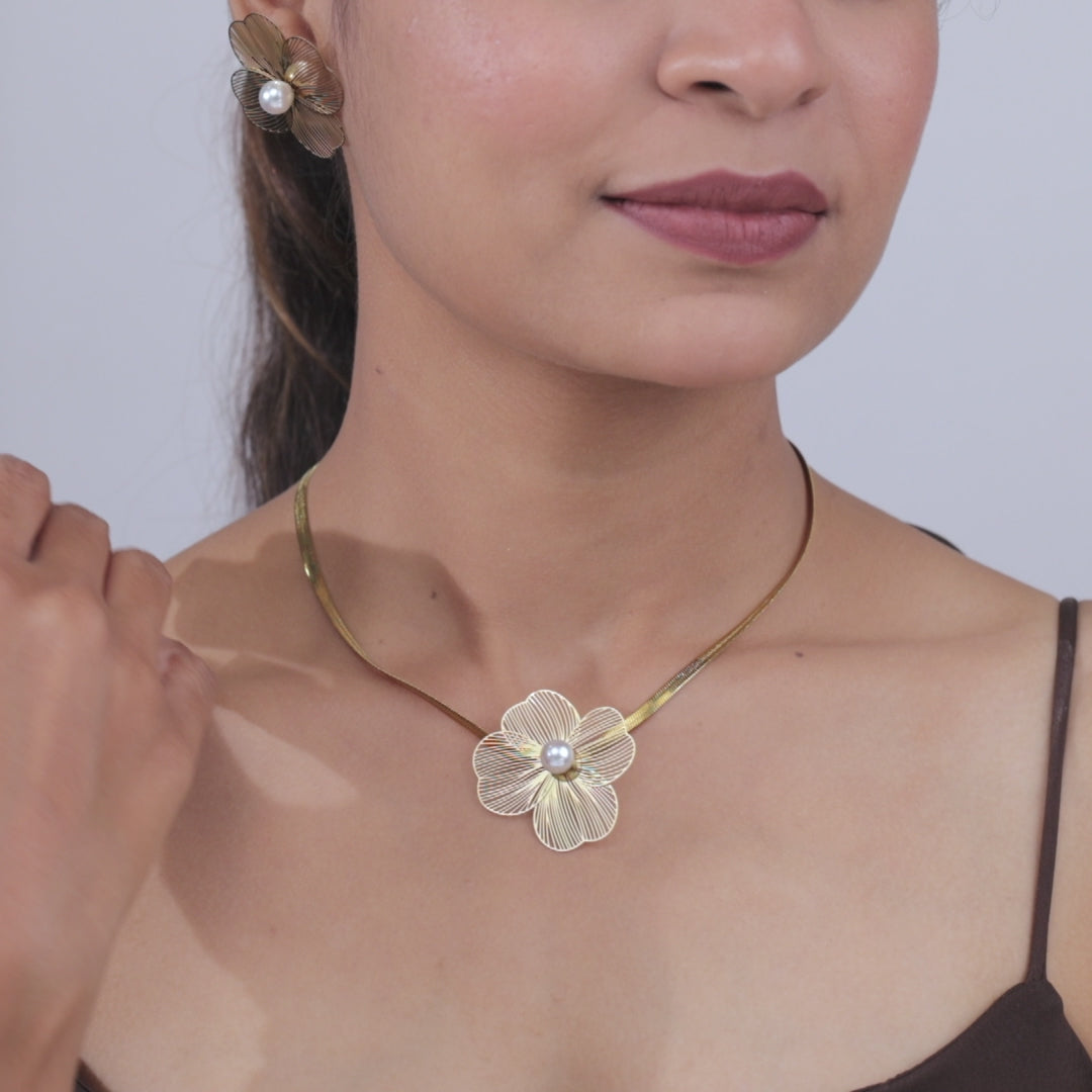 Pearl Blossom Elegance 18 Carat Gold Finished PVD Coated Anti-Tarnish Set