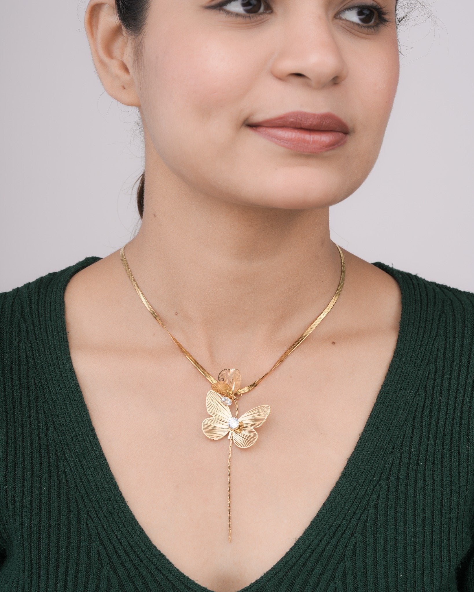 Add graceful sparkle to your look with the Zivelle Crystal Vine Anti-Tarnish Necklace, inspired by the flowing beauty of nature. Designed with a delicate vine motif adorned with shimmering crystal accents, this necklace brings elegant movement and refined charm to your neckline. Crafted with a premium anti-tarnish finish, it ensures long-lasting shine, durability, and effortless maintenance for everyday wear. Lightweight and comfortable, it pairs beautifully with casual, office, and evening outfits. Wear it solo for a sophisticated statement or layer it for a modern touch. The Zivelle Crystal Vine Necklace blends nature-inspired elegance with contemporary luxury for timeless appeal.