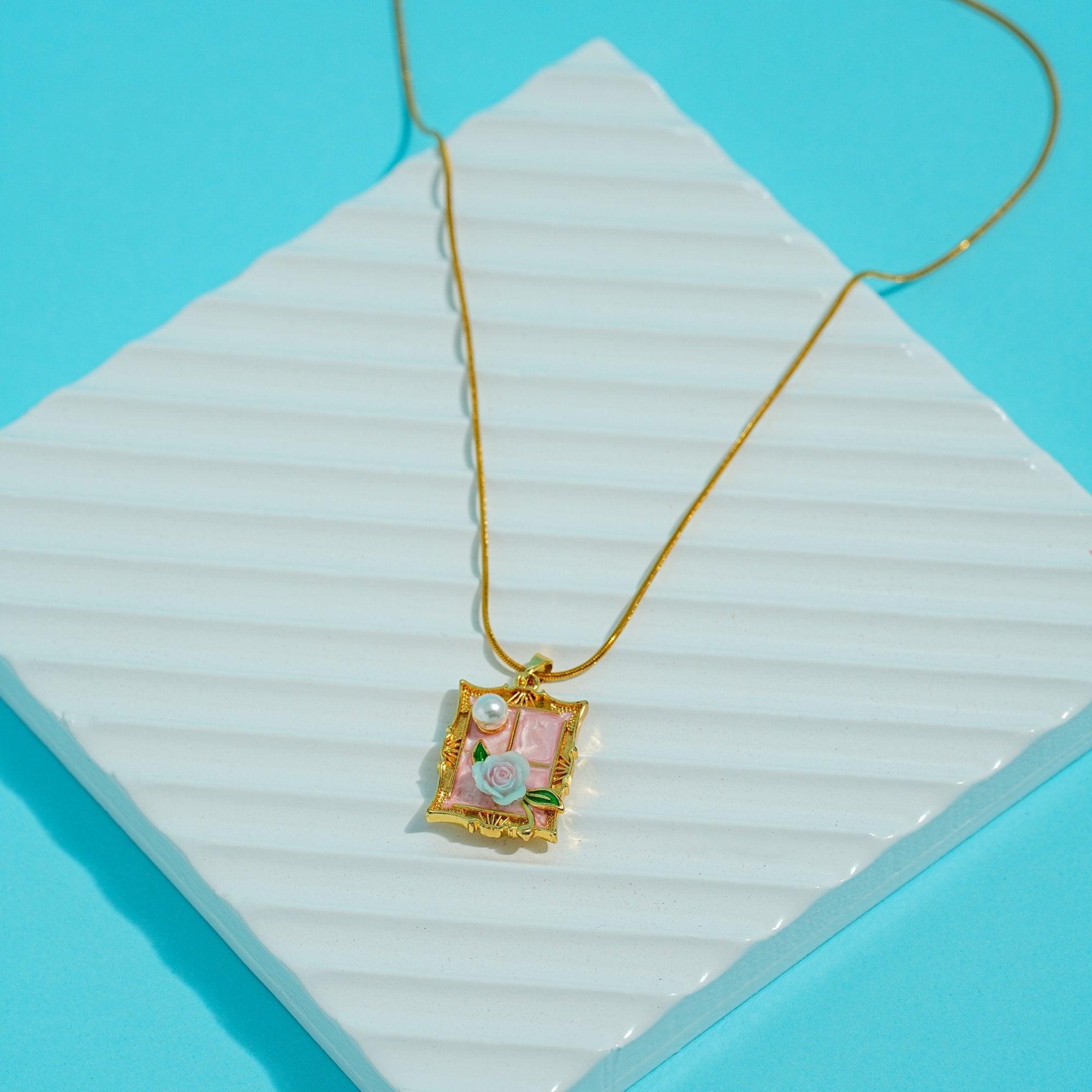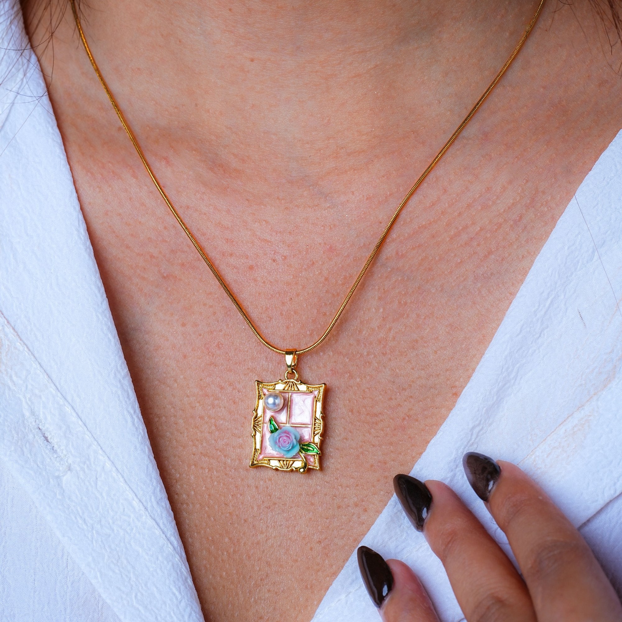 Blush Rose Window Locket 18 Carat Gold Finished PVD Coated Anti-Tarnish Necklace