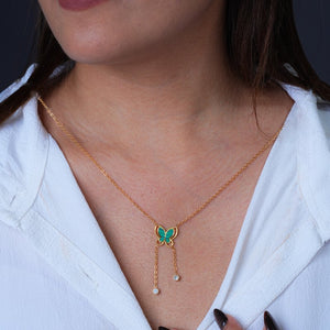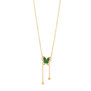 Emerald Butterfly Drop 18 Carat Gold Finished PVD Coated Anti-Tarnish Necklace