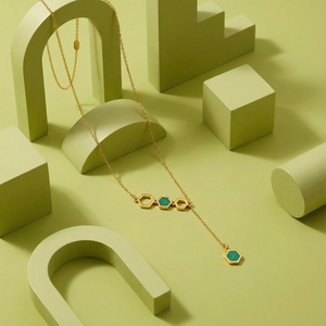 Add modern elegance to your jewelry collection with the Emerald Hexa Drop 18 Carat Gold Finished PVD Coated Anti-Tarnish Necklace. Designed with a sleek hexagonal motif and a radiant emerald-toned drop, this necklace blends geometric beauty with refined sophistication. Finished with premium 18-carat gold PVD coating, it offers long-lasting shine and excellent resistance to tarnish, making it perfect for everyday wear. Lightweight and comfortable, it pairs effortlessly with casual, office, and festive outfits. Wear it solo for a bold statement or layer it for contemporary styling. The Emerald Hexa Drop Necklace brings modern design, timeless charm, and luxurious craftsmanship into one elegant accessory.