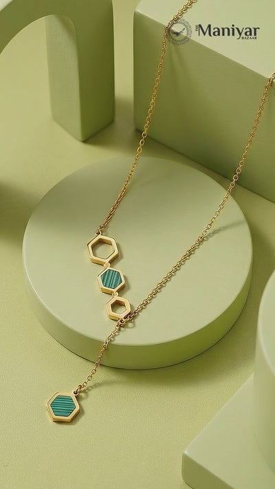 Emerald Hexa Drop 18 Carat Gold Finished PVD Coated Anti-Tarnish Necklace